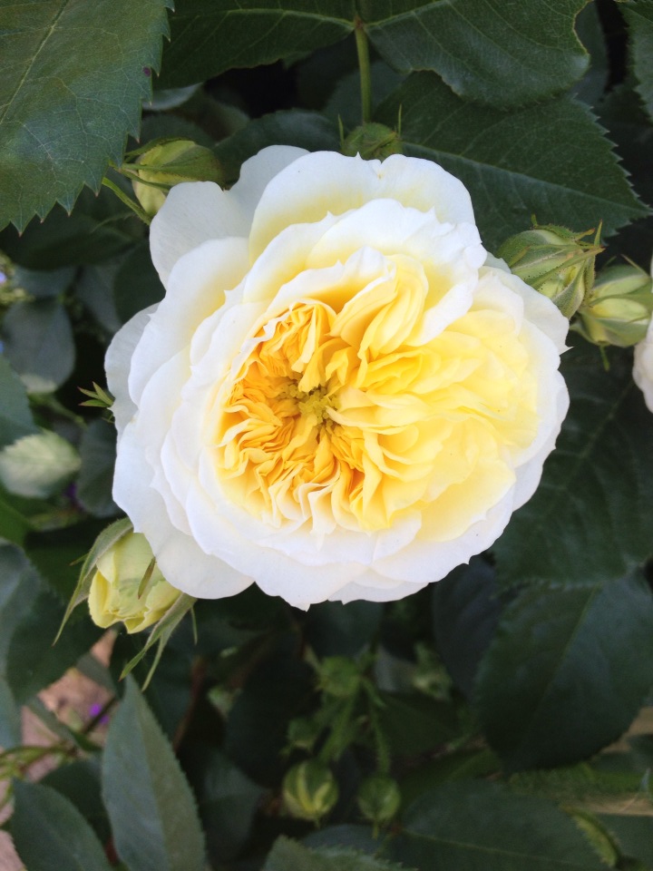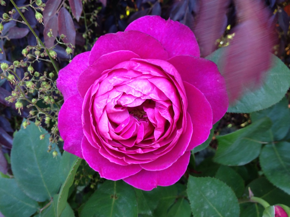 全開になったラ・パリジェンヌ。まだ一輪ですが庭がパッと明るくなります。