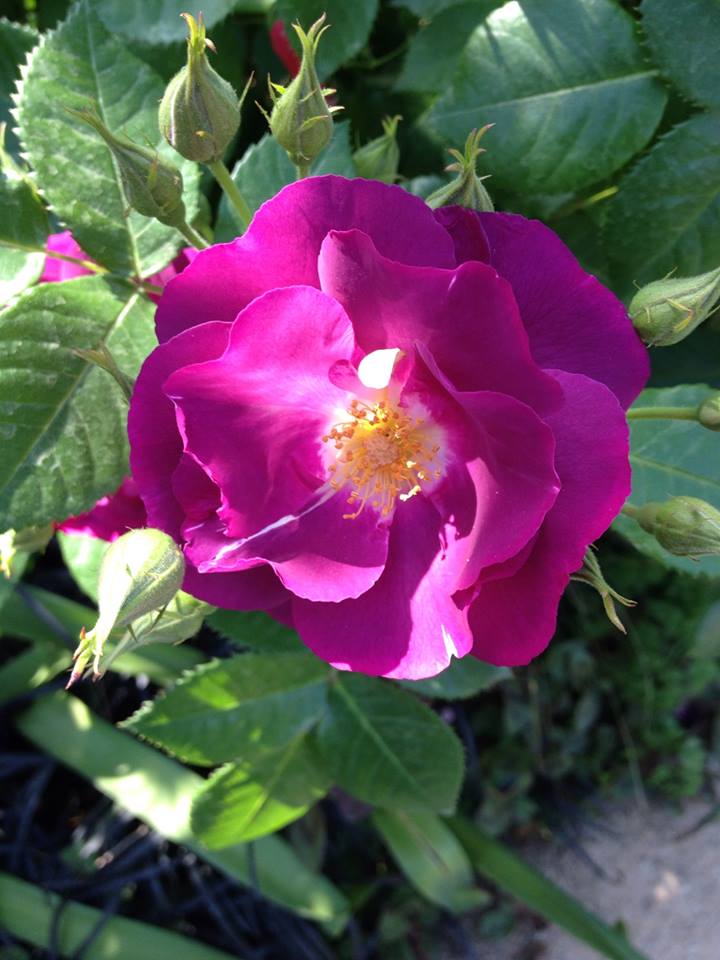 ラ・パリジェンヌの最初の花が開いてきました。鮮やかな色です。