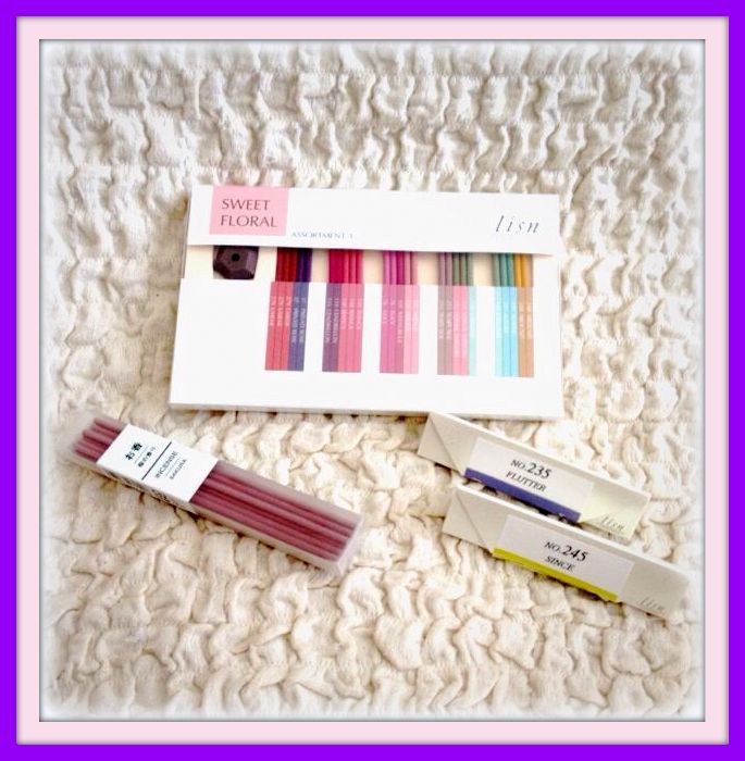 左手前のピンクのは無印良品で買った「桜」のお香です。