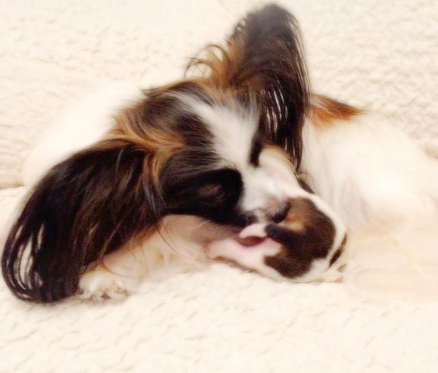 毎回徹夜は辛いのですが、子犬が勝手にオッパイを吸えるように