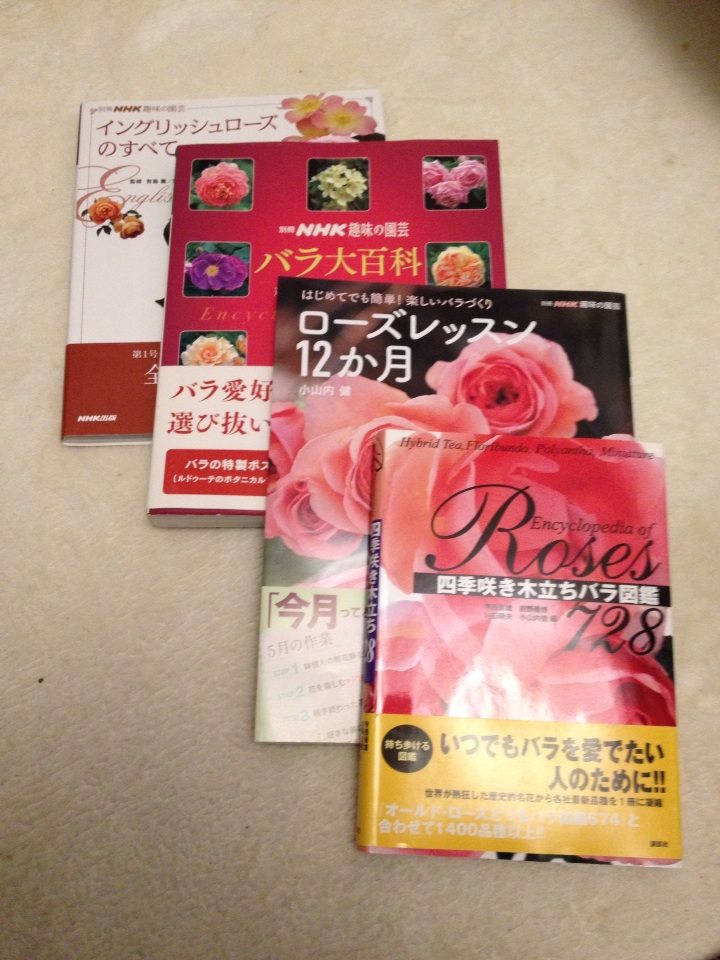 左上がイングリッシュローズの本。上から2番目がバラ大百科