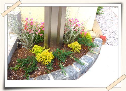 門柱の下という小さな限られたスペースでも意外と花壇を作るのって
