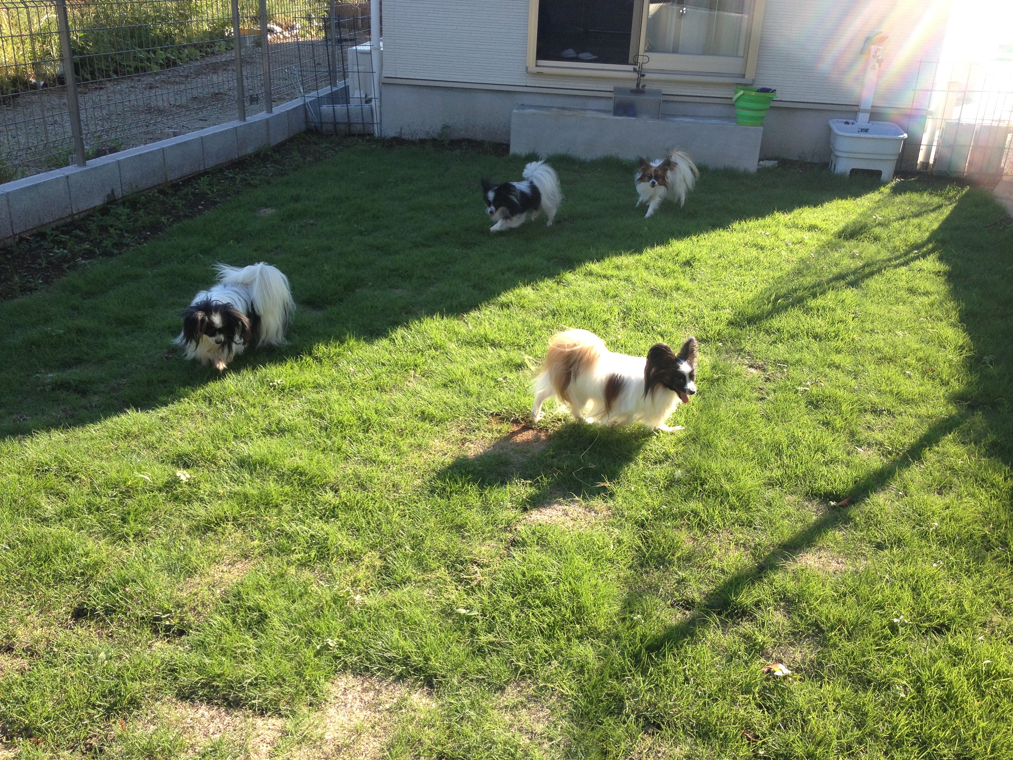 またワンズを庭で遊ばせて収納した後に庭をウロウロする黄色い物体が!