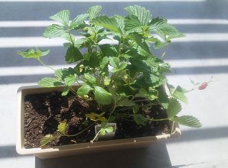 うちで買ったワイルドストロベリーは実がいくつかなっていましたが、今は一つで、次の白い