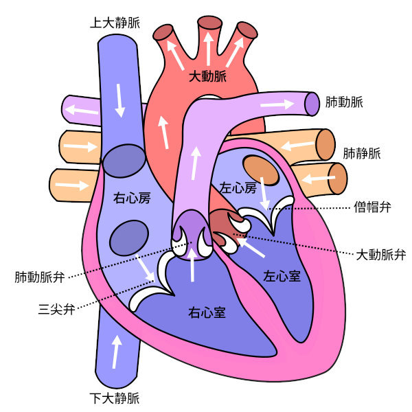 数が増えてくると「肺動脈」→「右心室」→「右心房」→「上大静脈」へ