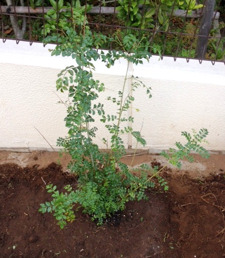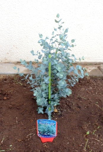 こちらも大きくなる木なので、ユーカリと反対の庭の端に植えました。
